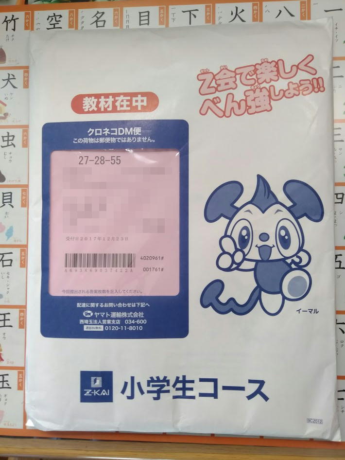 Z会の小学生講座は郵便物として月に1回このような形で教材などが送られていきます。