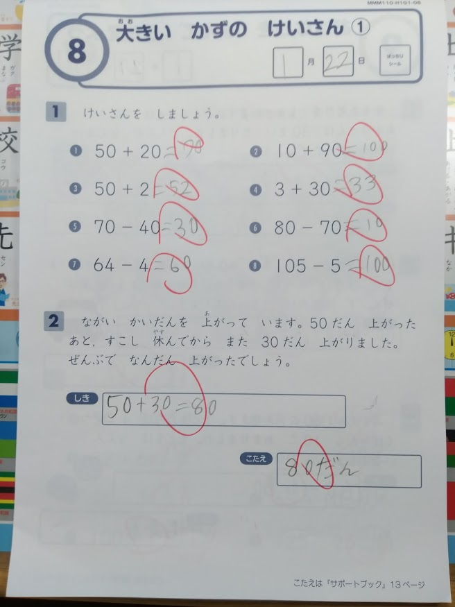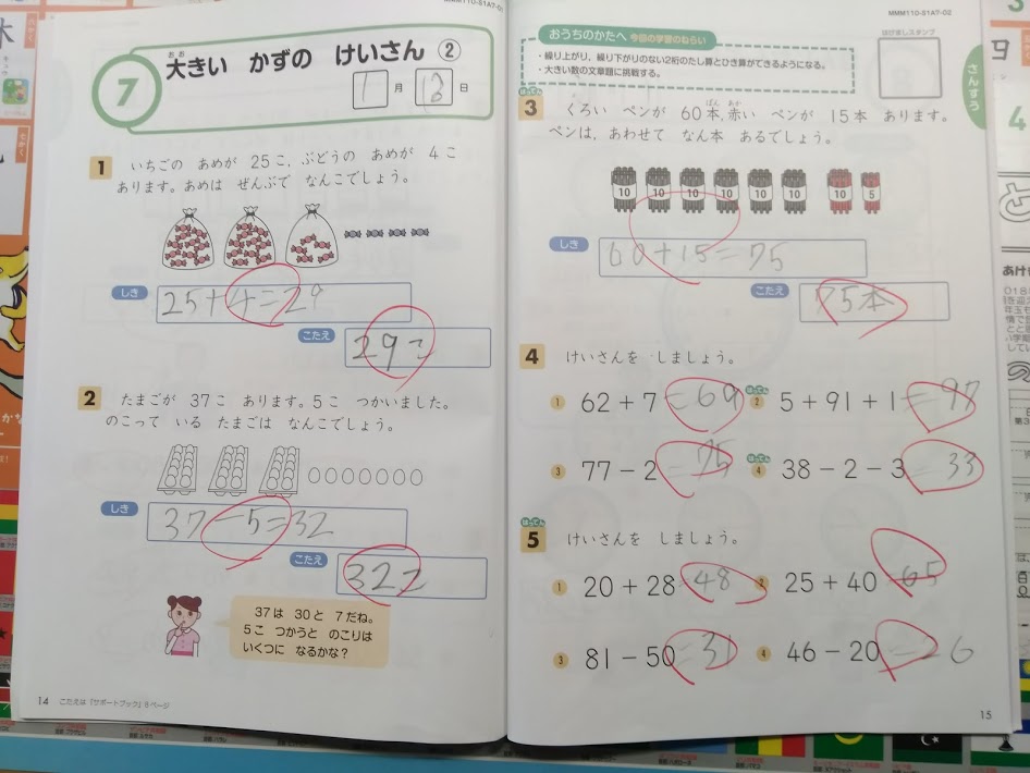 マル付けや採点、評価や間違った箇所の指導などは私たち親がやることになりますが、