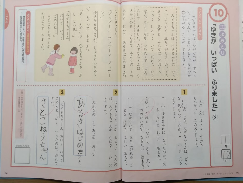 1日でわくわくエブリスタディ、若しくはドリルZの国語と算数を1回分進めれば、