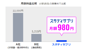 塾に通えば月額数万円、通信教育を受講すれば月額数千円ほど必要ですが、スタディサプリならたったの980円でOKです。
